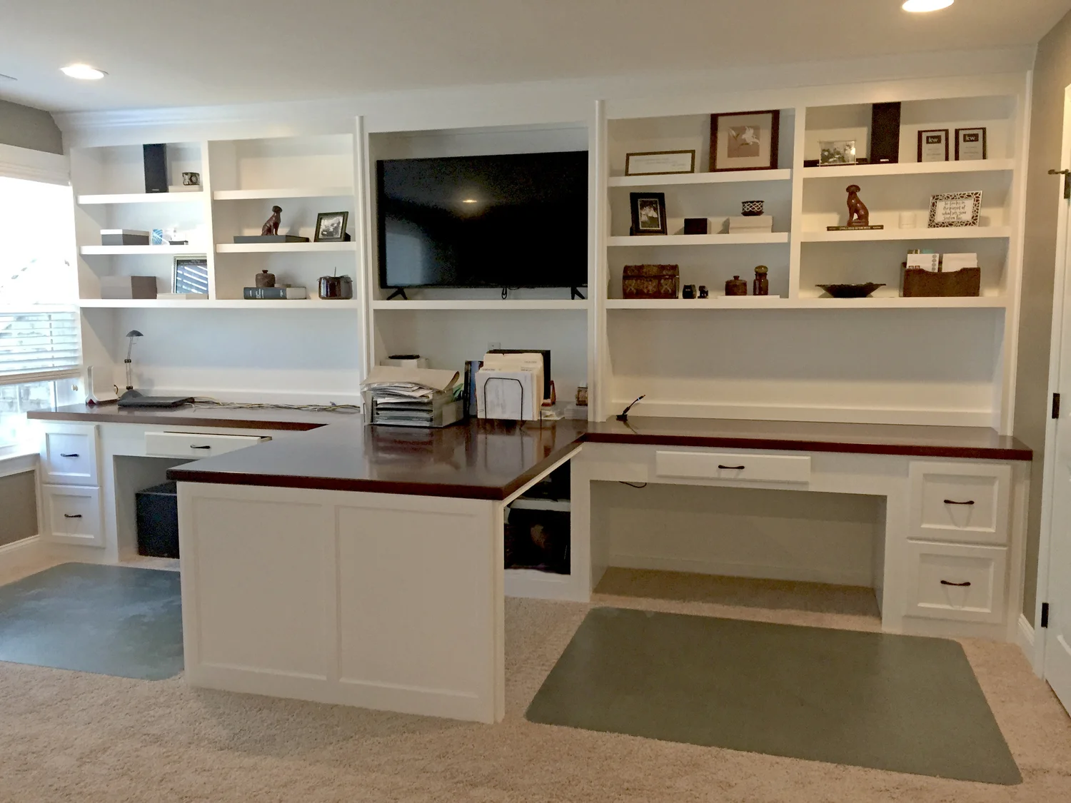 Double Built In Desk : See more ideas about built in desk, home, home decor.. Custom built in cabinets, floating shelves and fireplace mantel. 0 bids · ending saturday at 6:58pm gmt4d. Last week i shared our recent office makeover including the diy 12 ft long double desk we builttoday im here to give you. It can be two large executive desks with a wall of bookcases. Built in office desk ideas built in double desks office.